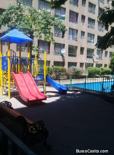 ARRIENDO DEPTO 1 DORMITORIO, LIVING COMEDOR, COCINA AMOBLADA Y EQUIPADA (CON COCINA Y REFRIGERADOR), BAÑO. A 2 CUADRAS DE ESTACIÓN DE METRO SANTA ANA, FRENTE A SUPERMERCADO. EDIFICIO CON PISCINA, SALA MULTIUSO, GIMNASIO, JUEGOS INFANTILES. GASTO COMÚN BAJO.
