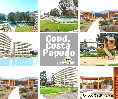 Condominio Costa Papudo cuenta con vigilancia las 24 horas del día, piscinas, áreas verdes, juegos infantiles y zona de quinchos.VacacionesEnPapudo.cl