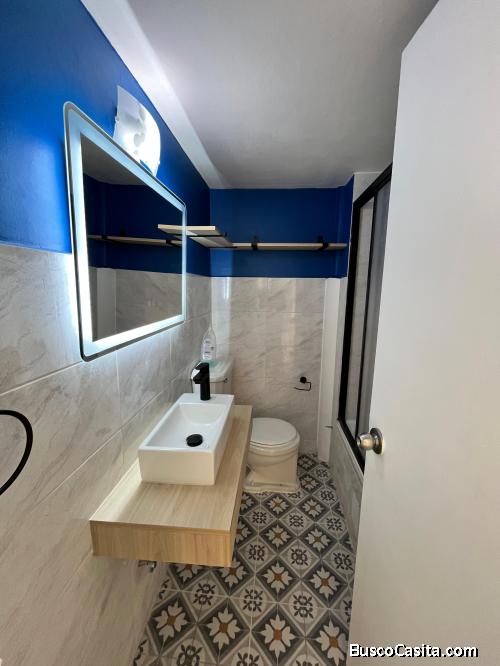 1 baño remodelado, con espacio para lavadora de carga superior.