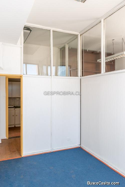 Características: Hall de acceso. Doce privados de diversos tamaños, casi la totalidad amoblados con gabinetes de madera instalados en buenas condiciones. Tres salas de baños. Una kitchenette. Cuatro Bodegas. Orientación norponiente. Octavo piso. Tipos de Pisos: Piso flotante en sala principal Privados con cubrepiso.