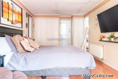 Distribución: Primer piso: Hall acceso. Baño de visitas. Un dormitorio de servicio con baño completo, y closet. Living y comedor divididos con mampara de madera, ambos con ventanales de aluminio. Comedor con puerta de acceso a cocina. Cocina amoblada y equipada con horno empotrado marca teka, encimera a gas, campana marca fensa. Comedor de diario, amplio espacio para refrigerador. Logia exterior techada con lavadero y muebles, posee acceso a cocina, ante-jardín y patio trasero. Gran patio con piscina, pasto natural, riego automático, terraza techada, pasillo con acceso a ante-jardín. Dormitorio principal en suite ampliado, con baño completo con tina y ventana, posee closet y cuarto de transición o home office u otro uso. Segundo Piso: Sala de estar + Espacio escritorio, con calefacción. Closet en pasillo. Baño completo con ventana. Tercer dormitorio con closet y balcón. Cuarto y Quinto dormitorio con closet. Otros: Pisos living comedor: piso flotante. Pisos cocina, hall de acceso baños: cerámica. Piso terraza: porcelanato. Agua caliente: calefont. Calefacción en living, comedor, sala de estar y habitaciones: caldera. Casa construida año 2004. Condominio: con accesos controlados, cámaras de vigilancia, Seguridad ADT, estacionamientos de visitas, extensas áreas verdes, juegos infantiles, salón de eventos, cancha de tenis y multicancha, gimnasio. 1908HUEVEN99